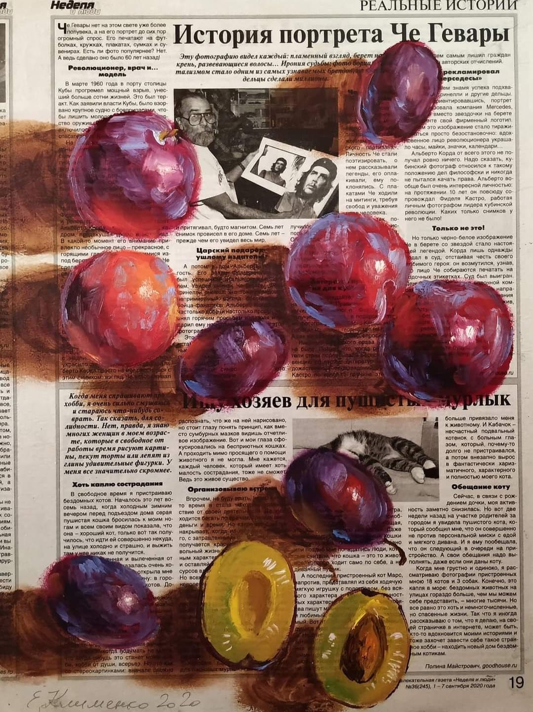 "Bon Appétit!" - "Смачного!", 2022, Hardboard, newspaper, varnish, oil, acrylic, 40x30 см, France.