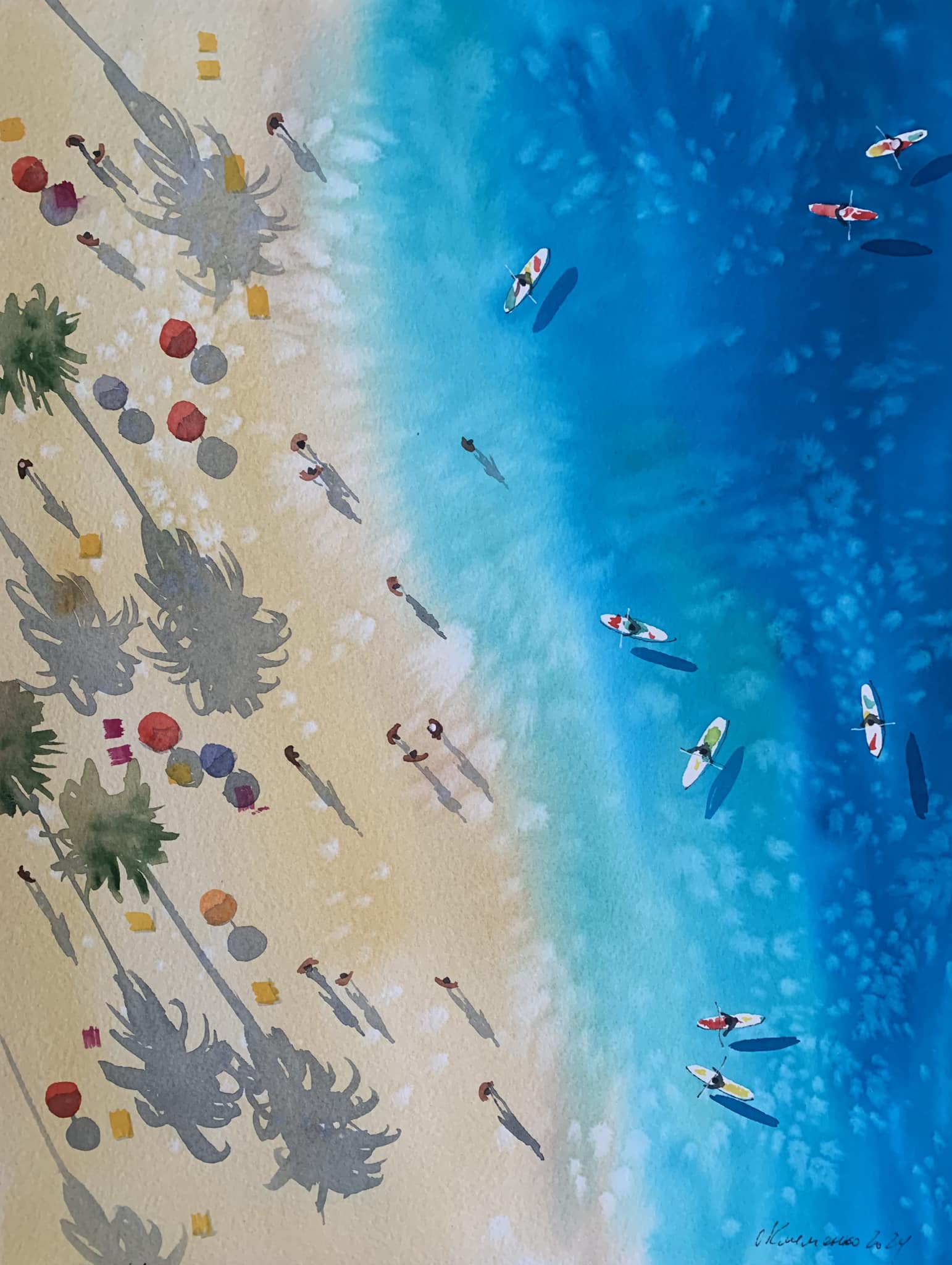 "At the Beach" - "На пляжі", 2023, Paper, watercolor, 30x25 cm, Olena Klymenko.