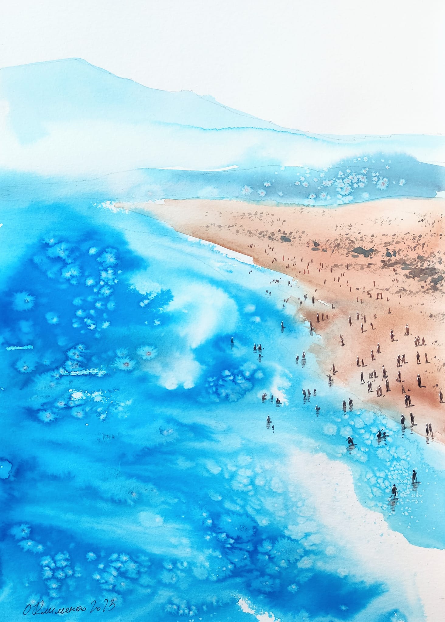 "Océan" - "Океан", 2023, Papier, aquarelle, 40x30 cm, Olena Klymenko.
