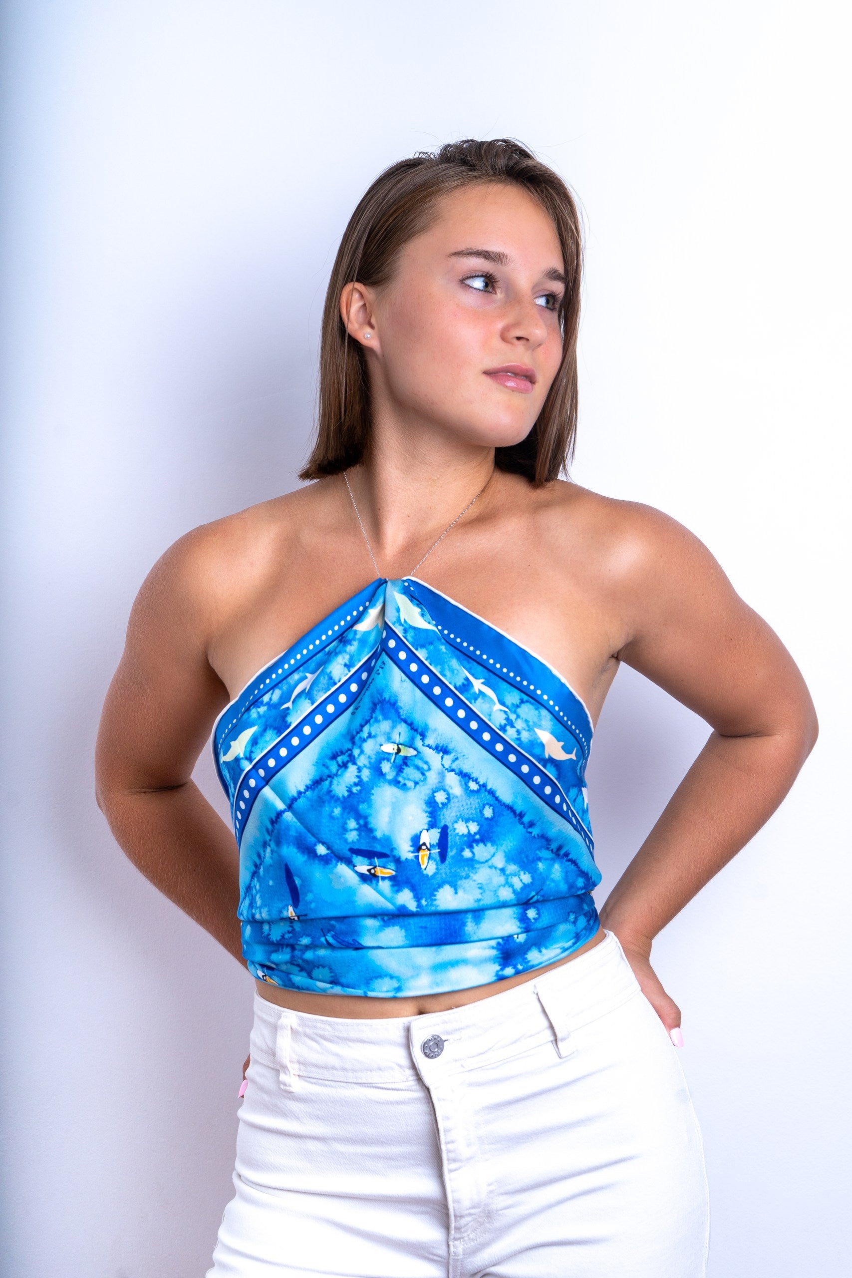 À chaque mouvement de ce foulard, on sent le souffle de la mer — le murmure des vagues et la lumière qui caresse l’eau.